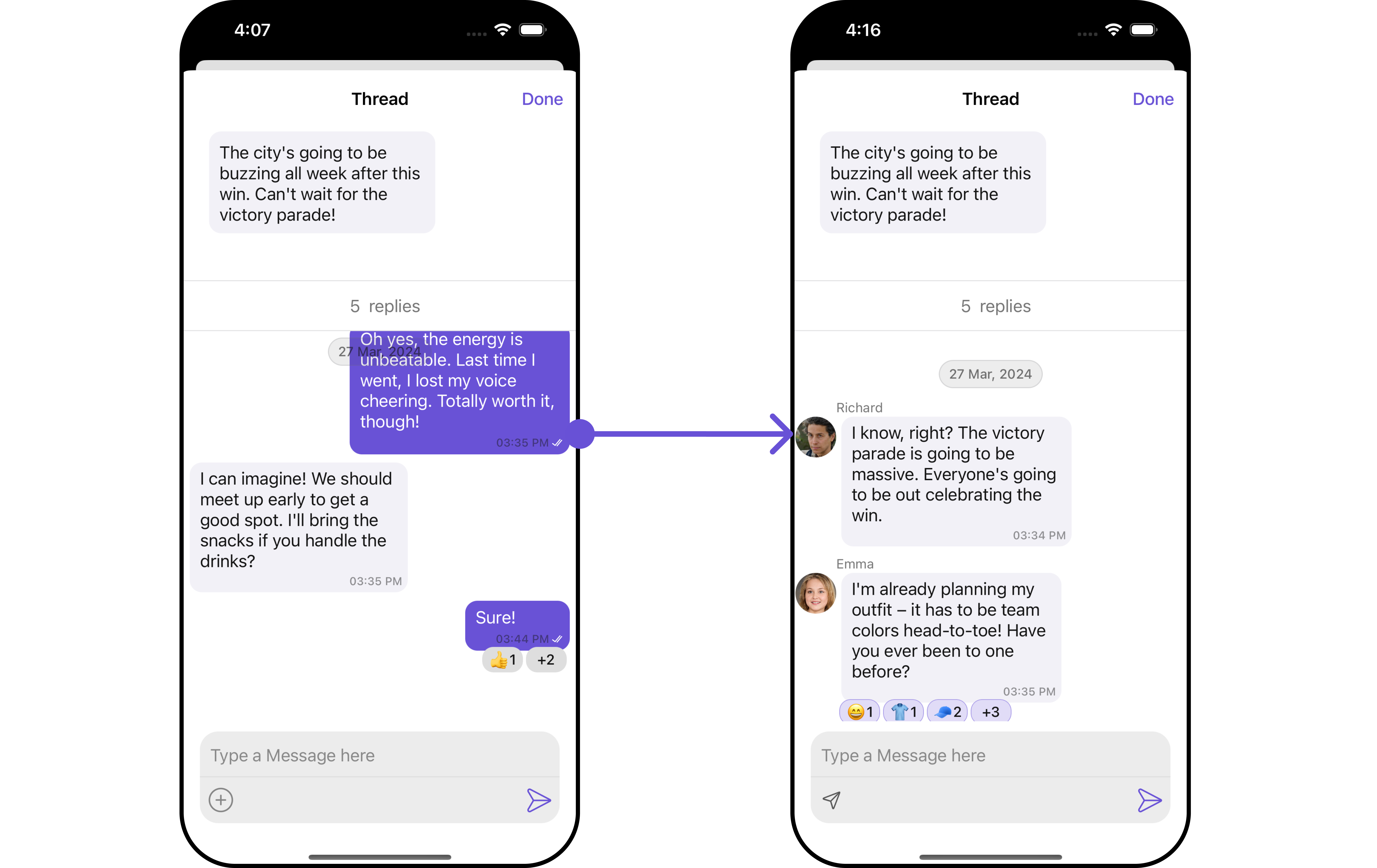 cometChatMessages. If a navigation controller is already in use, utilize the pushViewController function instead of directly presenting the view controller.ThreadedMessages report