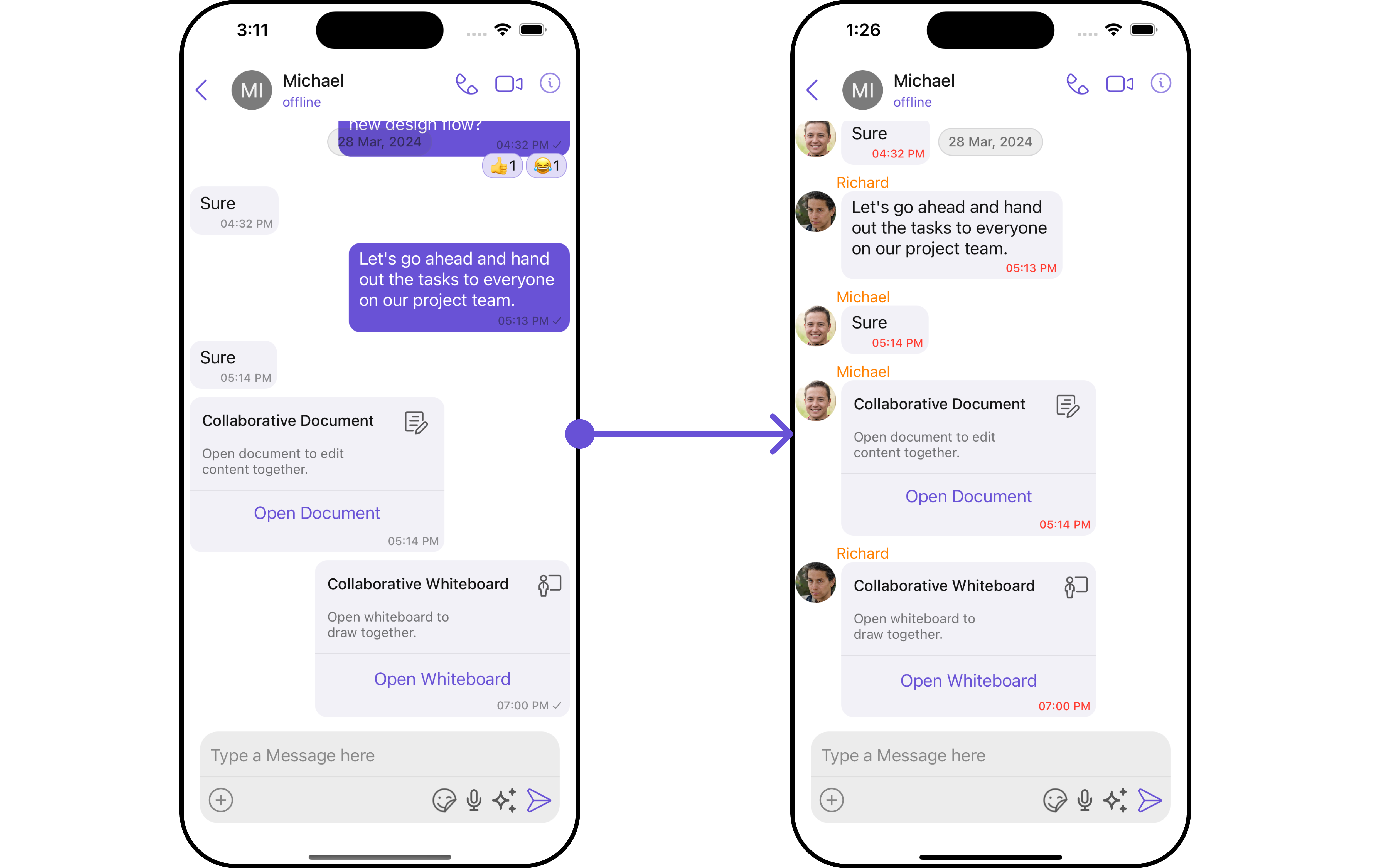 cometChatMessages. If a navigation controller is already in use, utilize the pushViewController function instead of directly presenting the view controller.- Swift